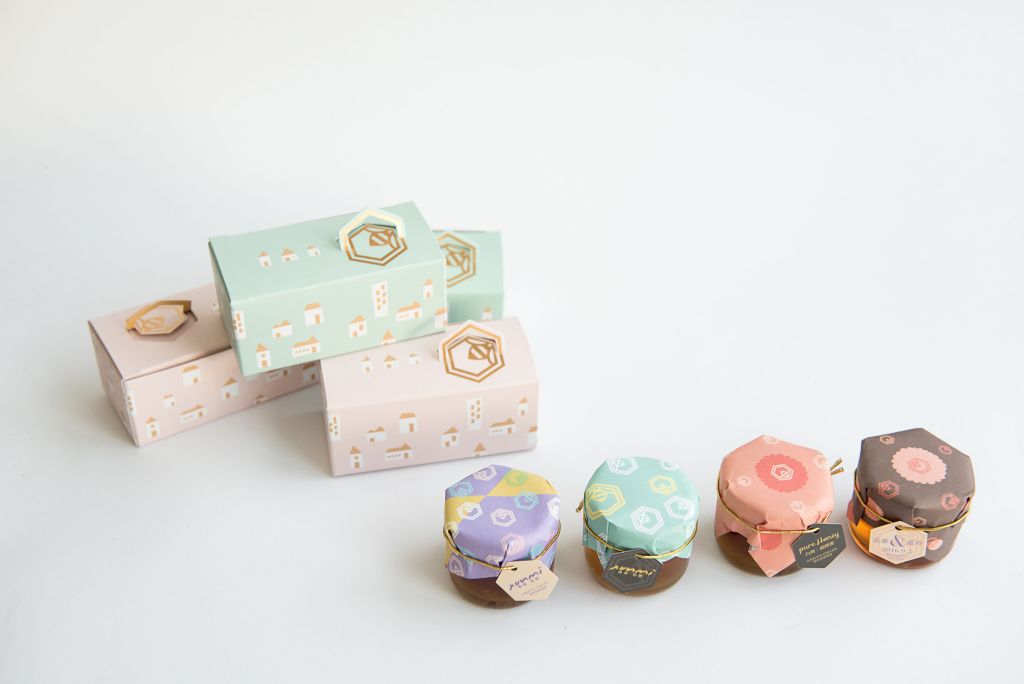 sweet home 精巧禮盒以「家」的概念呈現,裝入甜蜜的台灣蜜釀,其中「煙囪」的設計是令禮盒最大亮點!
