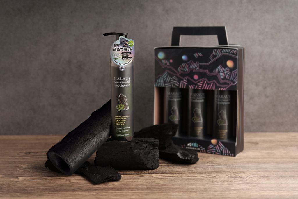 產品的核心,是選用龍崎盛產的在地竹材,經過精心燒製而成的高品質竹炭,並結合育有山林中的黑珍珠美稱的-馬告以外,給予消費者安心承諾 ×不含氟及三氯沙 ×不含有毒二甘醇 ×不含傷牙雙氧水(漂白劑) ×不含防腐水楊酸,將龍崎以及台鉅安心之元素融合,製成「馬告竹炭精油亮白牙膏」。