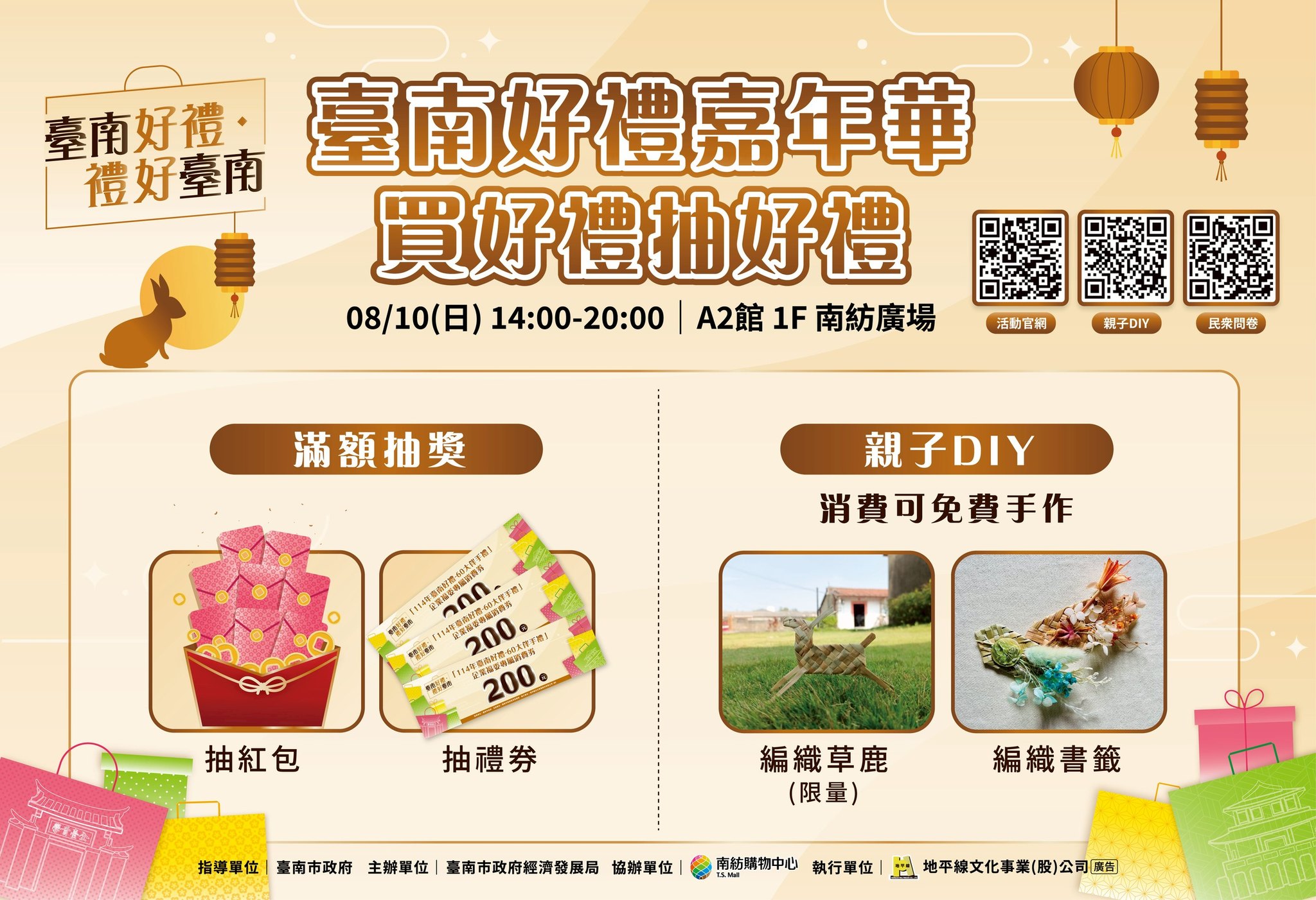 臺南好禮嘉年華 買好禮抽好禮 南紡購物中心 A2館1F南紡廣場 8/10 14:00-20:00