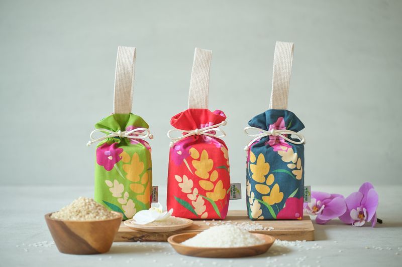 芳榮米廠獨創的布花設計,100%高質感純棉布,堅持台灣印製及製作的高品質,不僅送禮大方且兼具實用性,袋子可用重複使用做為保溫瓶袋、化妝包、零錢袋等,是送禮的最佳選擇之一。內容物為300g真空米,可選任一種芳榮經典好米- 益全香米、台灣越光米、鴨稻糙米,搭配印花純棉布,分別包裝,方便烹煮及保存!